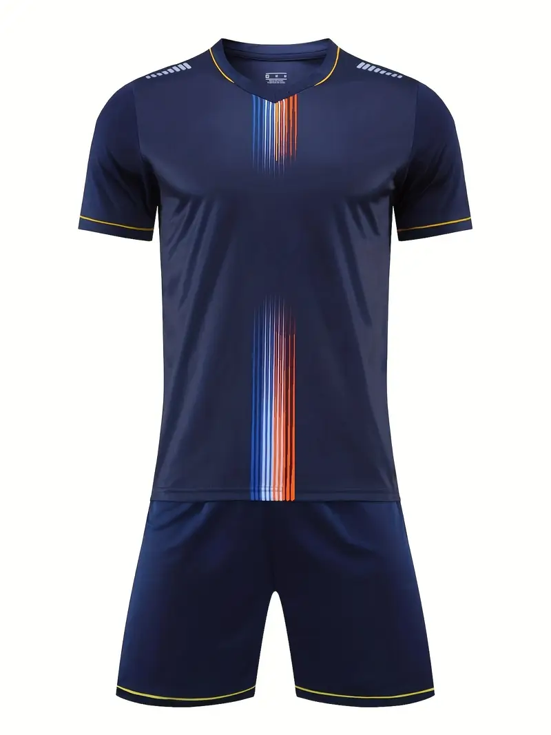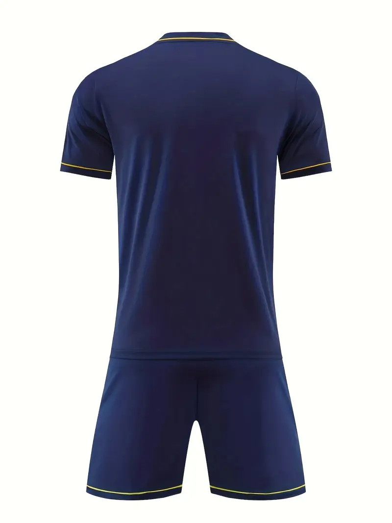 Dominate the field in this Navy Soccer Uniform, expertly manufactured by Luxord Sports for peak performance and durability. Made from a lightweight, breathable polyester blend with advanced moisture-wicking technology, this uniform keeps players cool and dry during intense matches. The jersey features an ergonomic, athletic cut for unrestricted movement, reinforced stitching for lasting durability, and a comfortable crew neckline. The matching shorts include an elastic waistband with adjustable drawstring and ventilated mesh panels for enhanced airflow. The rich navy fabric is colorfast and built to endure frequent washing and heavy use.